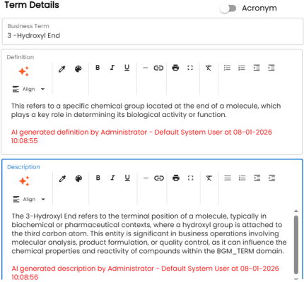Use this section to edit business term's details, such as its definition and description. For a description of fields on this section, refer to the Creating Business Terms topic.