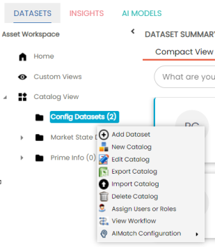 - Use this option to delete a catalog. Deleting a catalog also deletes all assets in it.
