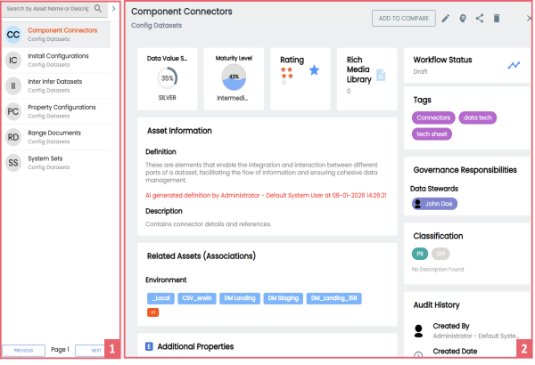 For more information about comparing assets based on properties, refer to the Comparing Marketplace Assets topic.