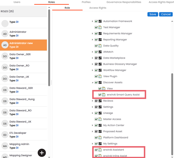 2. On the Roles tab, select the role to grant access to erwinAI features.