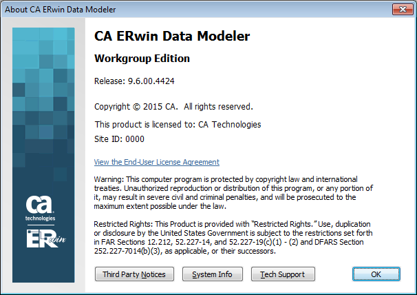 Effective with r8, the release of this product is displayed in the About CA ERwin Data Modeler dialog using the following release numbering scheme: