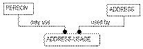 Associative and designative entities record multiple relationships between two or more entities. If the entity carries only the relationship information, it is termed a designative entity. If it also carries attributes that further describe the relationship, it is called an associative entity. In the example, ADDRESS-USAGE is an associative or designative entity. |