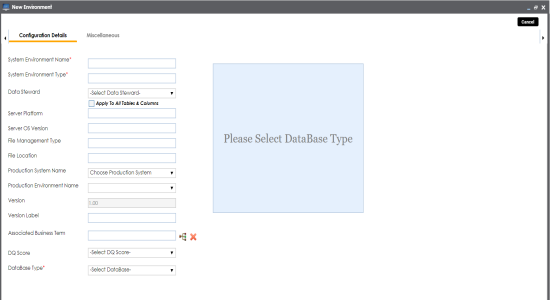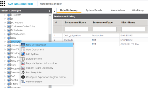 After creating a system in the Metadata Manager, you can create environments under the system. An environment can be created for different database types and flat files by fulfilling prerequisites and providing the connection parameters.