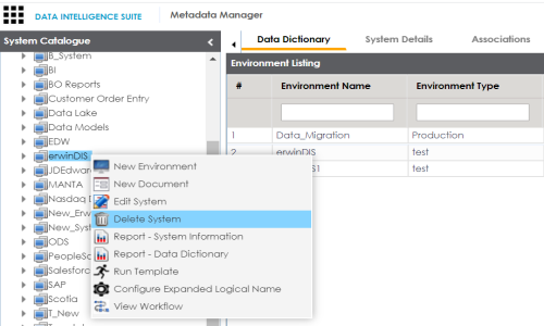 Note: You can not delete a system with one or more environments under it. Ensure that you delete all the environments under it before you delete a system.
