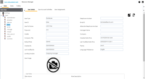 - Note: You cannot edit the User Type, User ID and the Default Role.