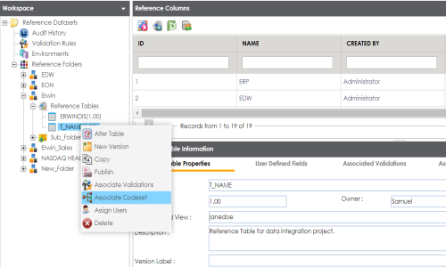 - Expand the Reference Tables node and right-click the reference table to be associated.