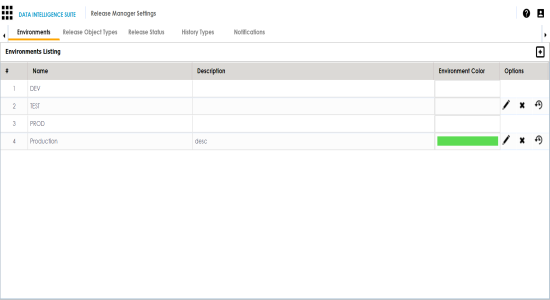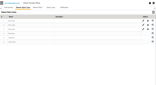 The Release Object Listing appears. Data Item, Code Set, Code Map are the default release object types which can not be edited or deleted.