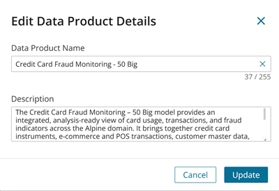 • Edit Data Product: Opens the Data Product Details workspace. Go to step 3 to update.