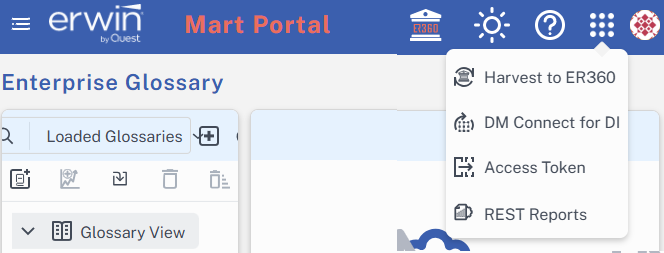The DI-DM Mart Bridge connector syncs glossaries between erwin Data Modeler (erwin DM) and erwin Data Intelligence (erwin DI) via erwin Mart Portal. Basically, glossaries in erwin DM models are pushed to erwin DI under the business glossary manager via DM Connect for DI. You can then use the DI-DM Mart Bridge connector to harvest any updates made to these glossaries under Enterprise Glossary in erwin Mart Portal.