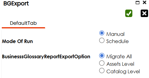 . - Select Catalog Level from the BusinessGlossaryReportExportOption and keep the Mode of Run as Manual to get a glossary.