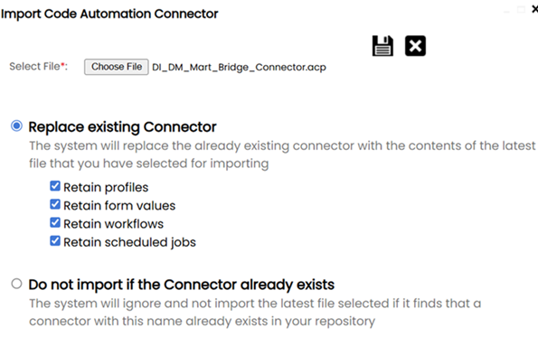- Download the connector file named DI_DM_Mart_Bridge_Connector.acp.