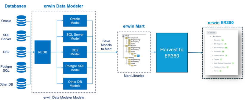 erwin DM supports several target databases. It provides a powerful and robust workspace to create rich data models based on these target databases. Further, it provides connectivity to erwin Mart Server (MS); where you can store your rich data models in a mart repository.