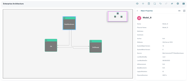 With all your harvested models and metadata, ER360 allows you to construct and visualize Enterprise Architecture (EA) diagrams — helping data modelers, architects, and business users understand the relationships and data flows across systems.