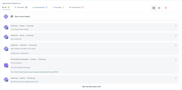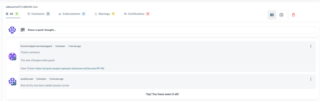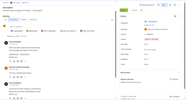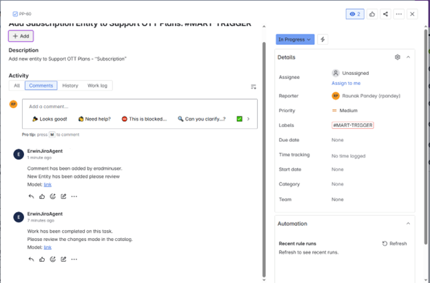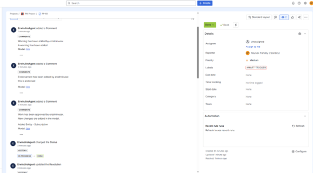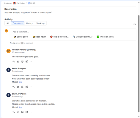 The data modeler sees the request in JIRA and reviews the status in ER360.