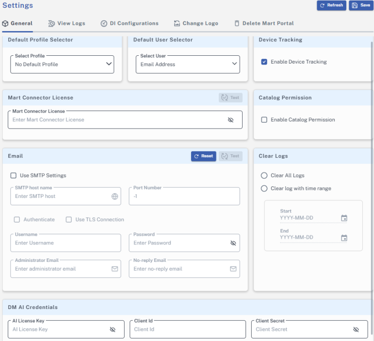 Administrator email Specifies the email ID of the Mart administrator. Notifications to Mart users are sent from this ID.