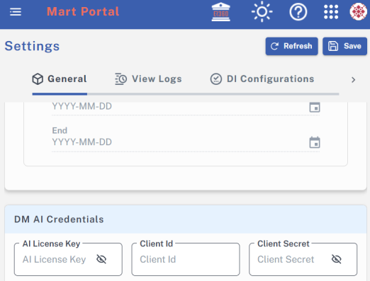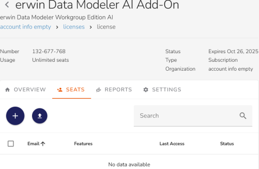 By default, AI features are disabled. To enable them, you need to configure your license using AI credentials through erwin Mart Portal and ensure that erwin DM is connected to the erwin Mart Portal.
