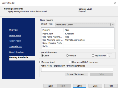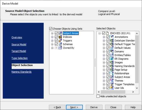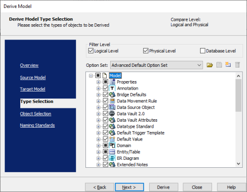 | Filter Level | Specifies the set of objects that will be derived to the new model |