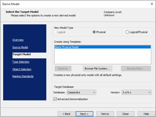| New Model Type | Specifies the type of the target database model. Available options are Physical and Logical/Physical. |