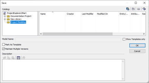 You can save projects to erwin Mart Portal to enable versioning in your mart and to collaborate with team members. It also helps to ensure consistency of the data.