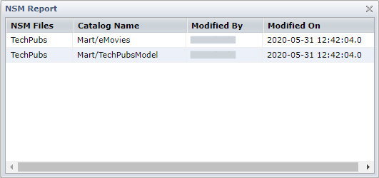 An NSM file can be applied to multiple models. You can view a report of models to which an NSM files is applied. Apart from models, this report displays the time stamp and editor.